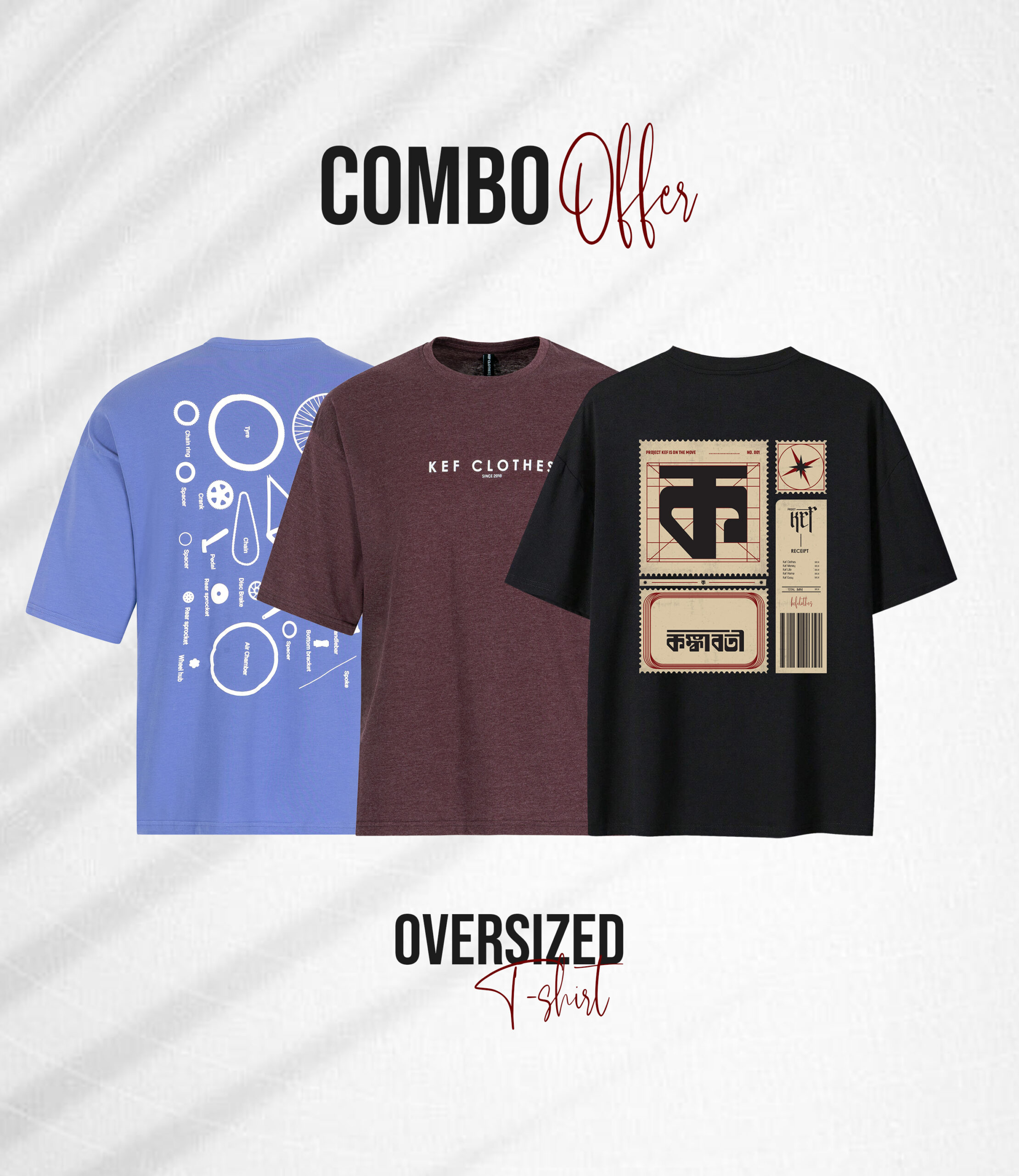 3 Pcs Oversized T-shirt Combo-3 (Flat 40% off)